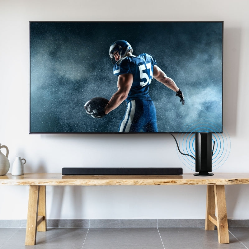 Then position the antenna wherever you choose, whether behind the TV, on a table, or mounted on a window or wall.