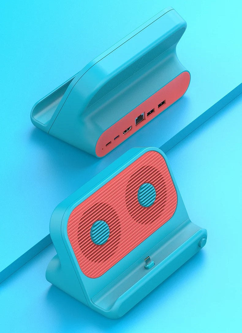 Transform your Nintendo Switch/OLED adventure with this multifunctional docking station, equipped with HDMI 2.0, dual USB ports, RJ45 for a stable internet connection, and powerful 100W Power Delivery. The built-in cooling fan ensures optimal performance even during intense gaming sessions. Maximize your connectivity while avoiding overheating, and dive into uninterrupted gaming with this sleek all-in-one solution.