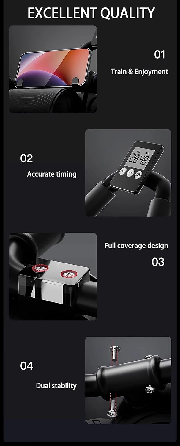 Double non-slip wheels: Equipped with wide 100MM wheels featuring durable rubber surfaces to minimize floor damage, ensure quiet operation, and enhance core engagement.