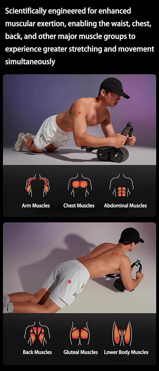Unlock a full-body workout with our innovative ab roller wheel, designed to combine rolling mechanics with a sturdy plank platform targeting multiple muscle groups. This fitness essential is suited for smooth and safe workouts, suitable for everyone from beginners to advanced athletes, allowing you to reach your fitness goals with ease.