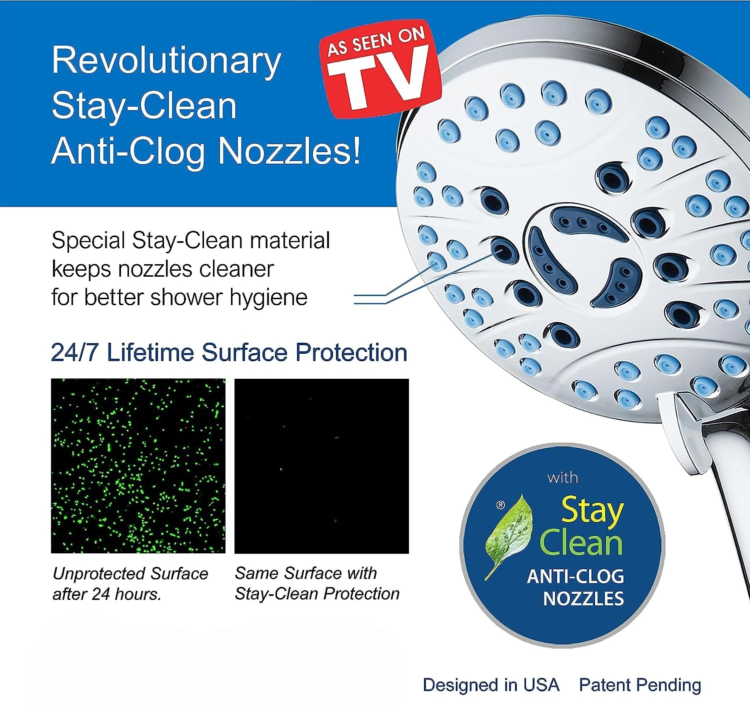 - ANTI-CLOG NOZZLES: Advanced nozzle technology that prevents buildup, ensuring spotless showers and minimal maintenance.