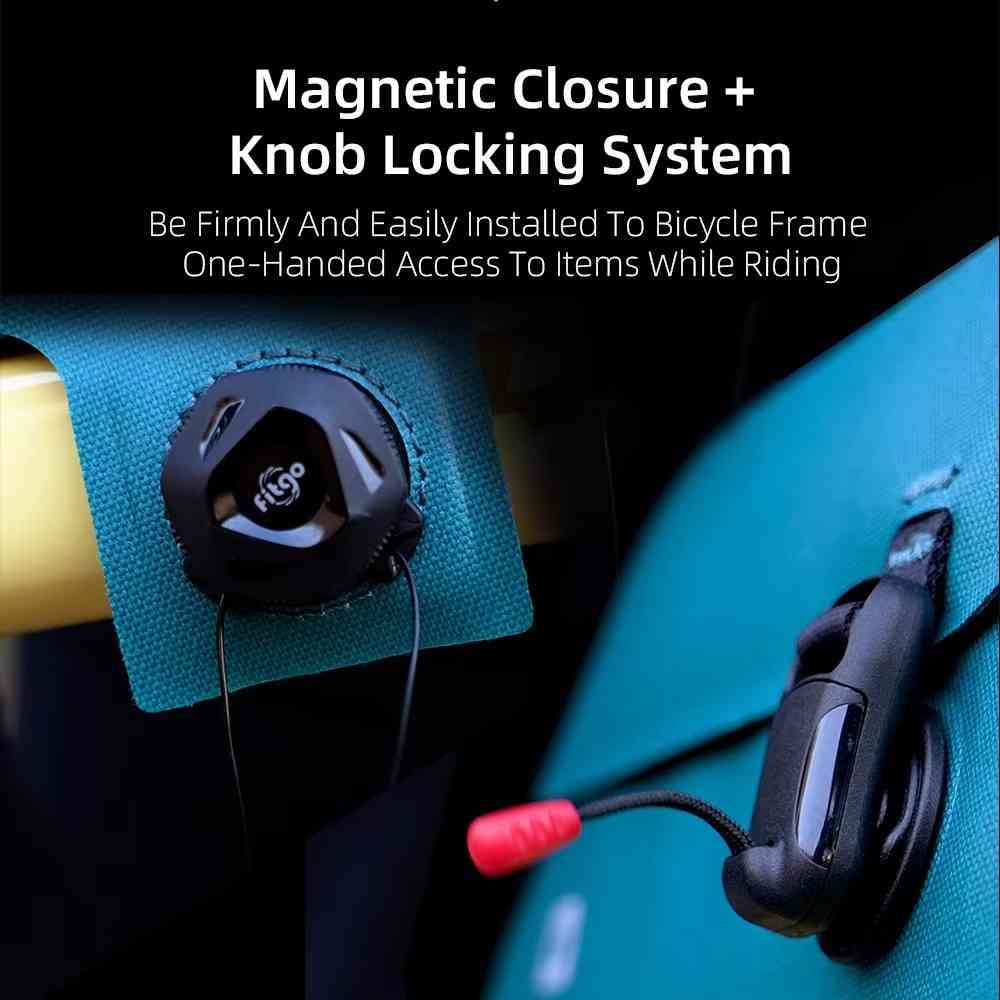 The clever button buckle and cord system ensures a secure attachment to your bike frame, preventing any swaying while you pedal. Advanced seamless welding technology creates a waterproof barrier against moisture, while the magnetic closure keeps your belongings safe.