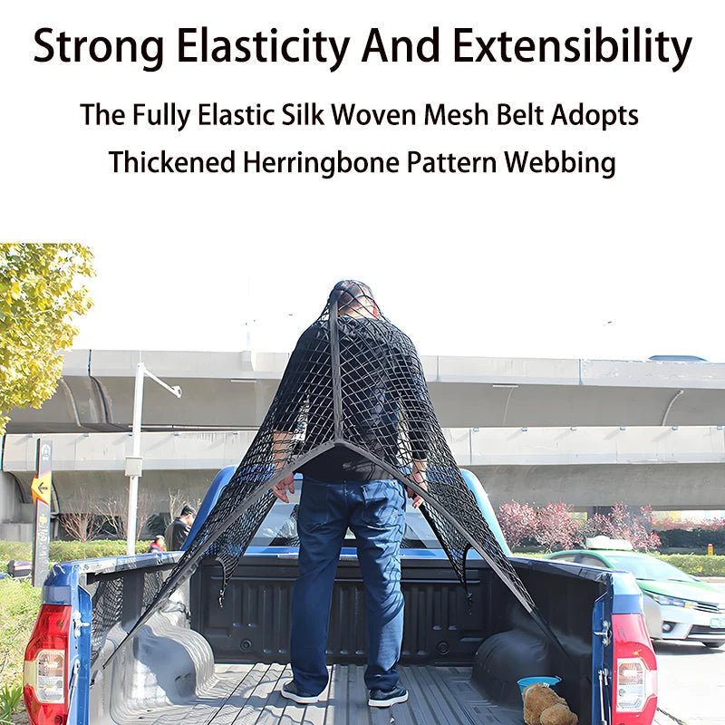 - Versatile truck bed net suitable for pickups, SUVs, car trunks, and more