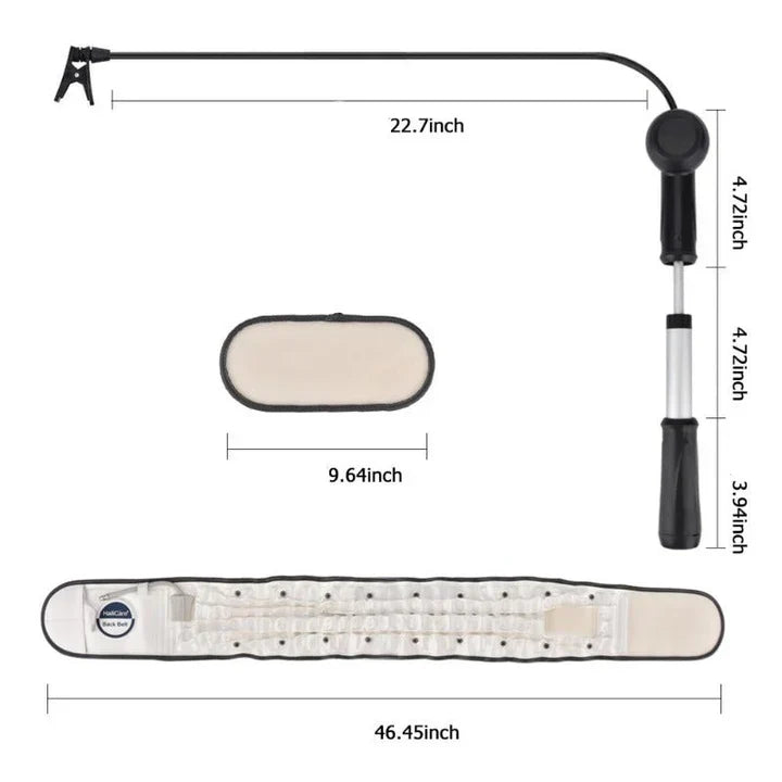 - Back Support Belt: This advanced belt effectively redistributes the weight of your upper body away from the lower back, significantly reducing pressure on the spinal discs. It is also perfect for driving! The adjustable design ensures optimal comfort and relaxation throughout the day.
