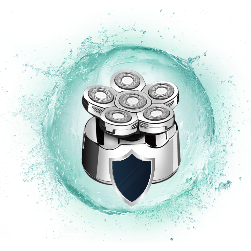 Main device: 1 x shaving unit, 1 x USB charger, 1 x user manual, 1 x 6-blade razor head, 1 x cleaning brush
