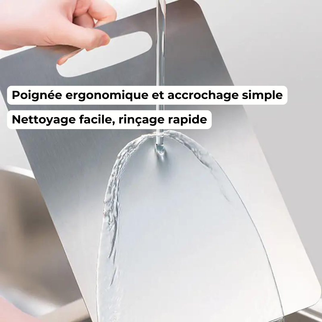 Made from an incredibly durable material, this titanium board is designed for long-term use. Unlike wooden boards that require regular oiling to prevent cracking or plastic boards that can warp or melt under heat, maintenance of this board is incredibly easy — just wash it with soap and water, and it is dishwasher safe!