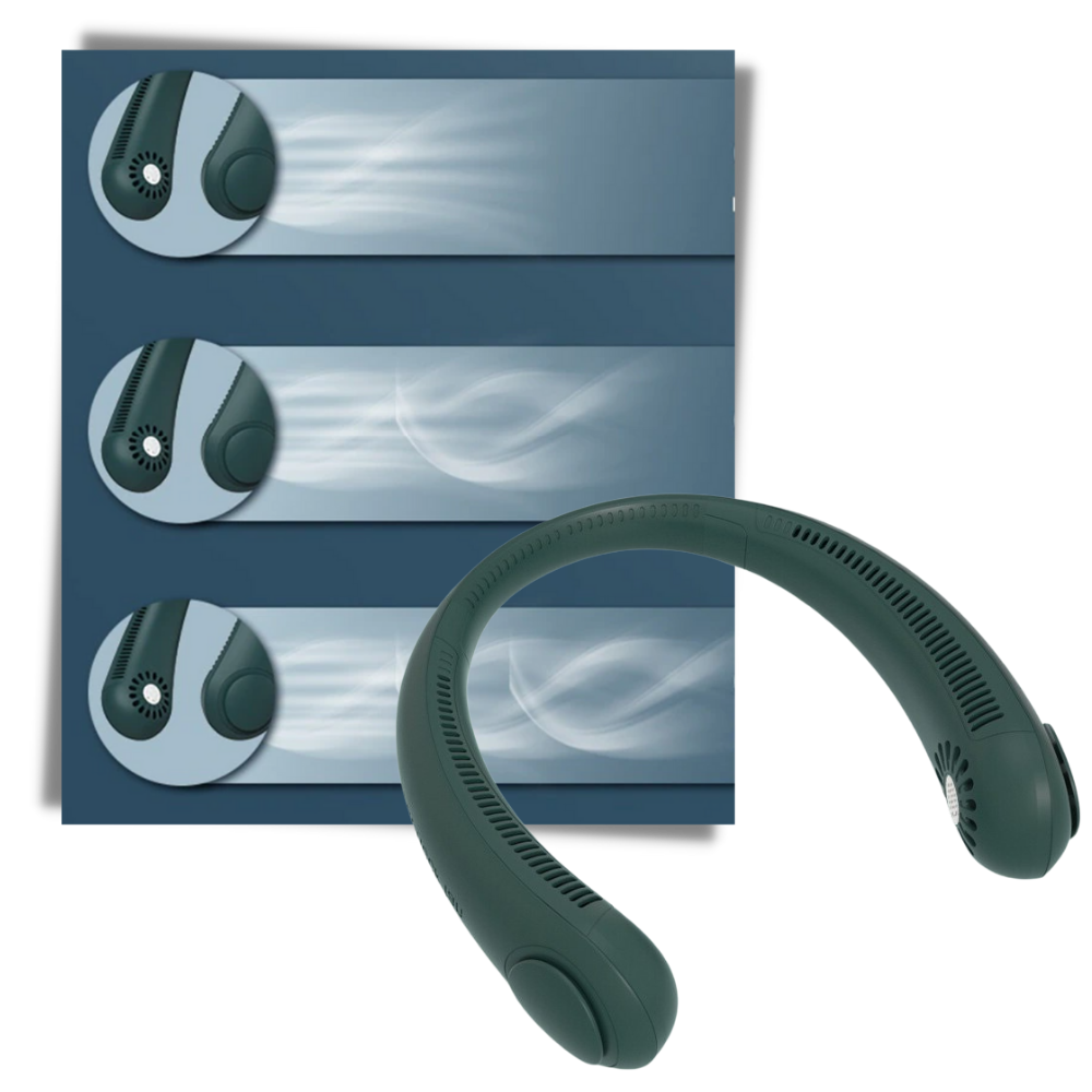 Unlike conventional fans that must be held or placed in a fixed position for cooling effect, which can be quite uncomfortable,