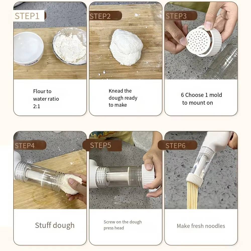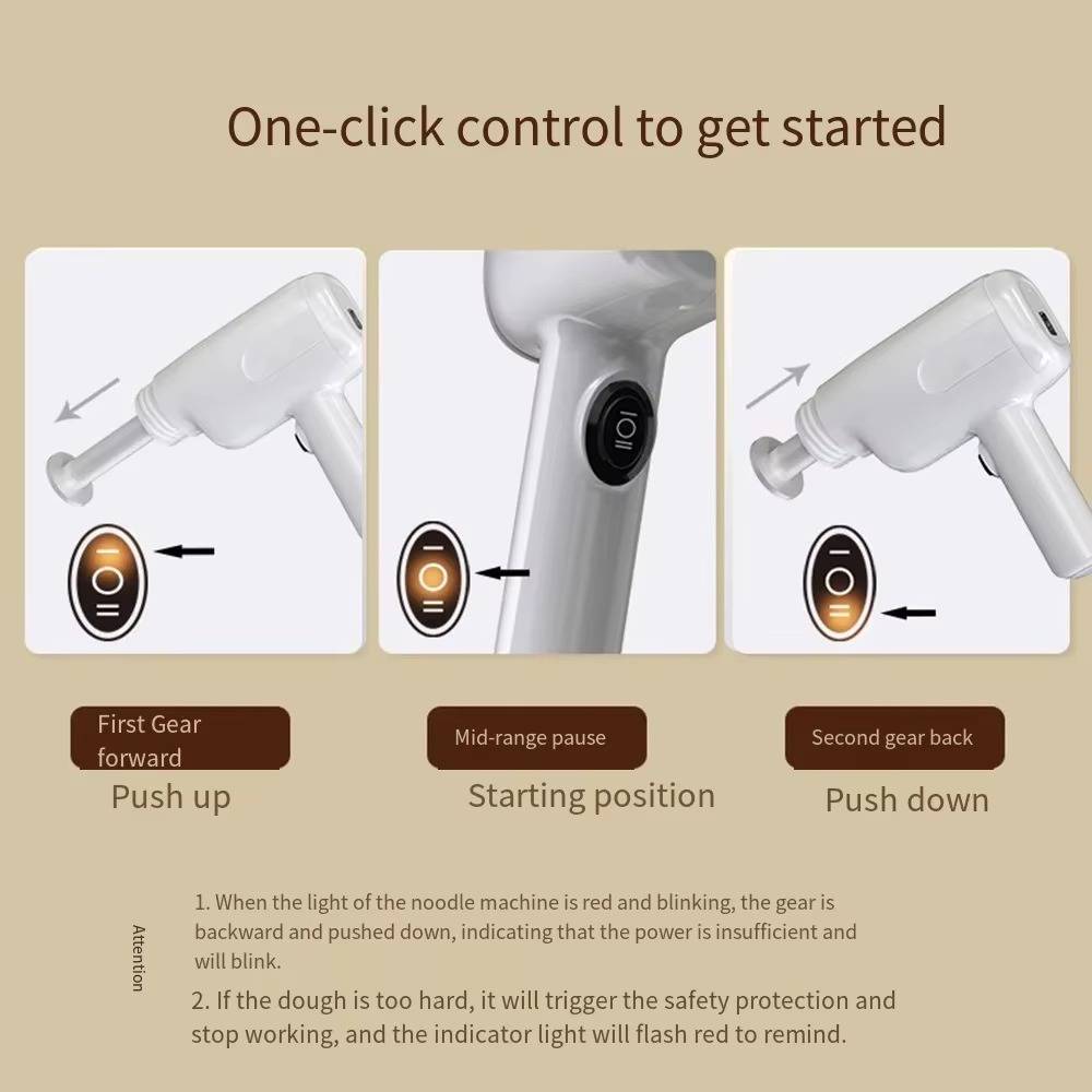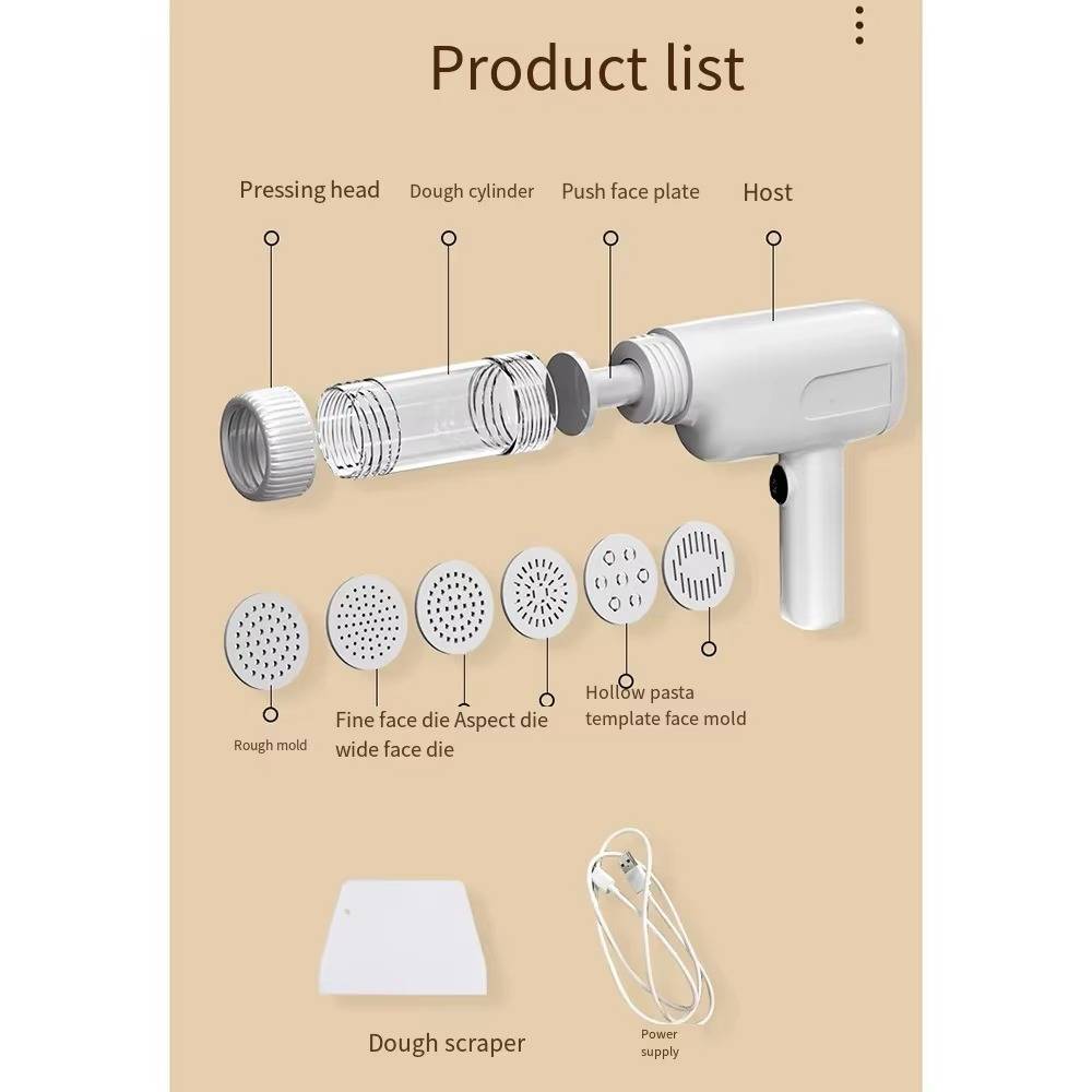 This sleek device produces 200 grams of tasty noodles each cycle, powered by a robust rechargeable battery. With six professional molds available, you can easily create a variety of noodle shapes. Additionally, the specially designed pusher ensures a steady and uninterrupted flow, guaranteeing flawless results every time.