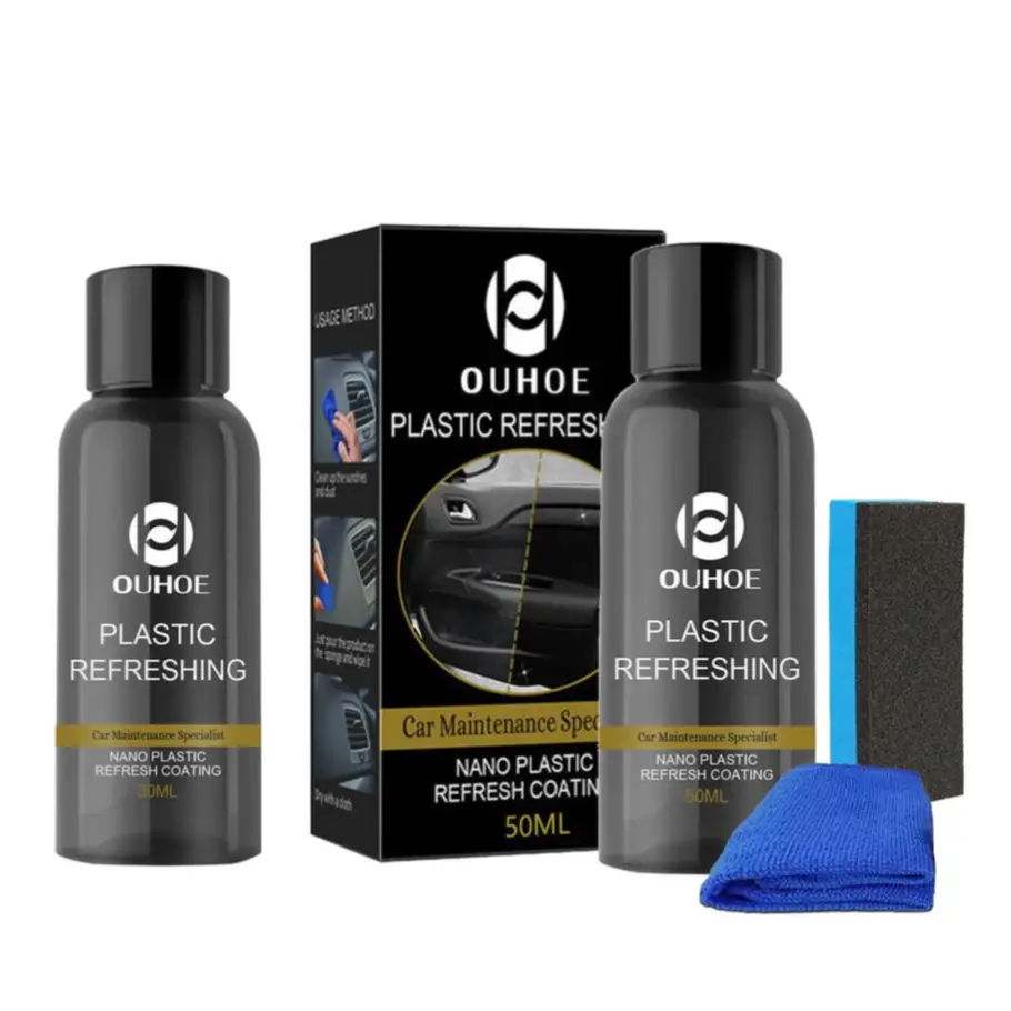 Revitalize your vehicle's appearance with the ÉclatAuto Plastic Renovation Kit with Brush & Microfiber Cloth. This powerful solution restores dull plastics to their original shine while providing lasting protection against aging, oxidation, and environmental damage. The kit includes a specialized brush and microfiber cloth, making maintenance simple and effective. Experience an extraordinary transformation and effortless shine that keeps your automotive components looking like new!