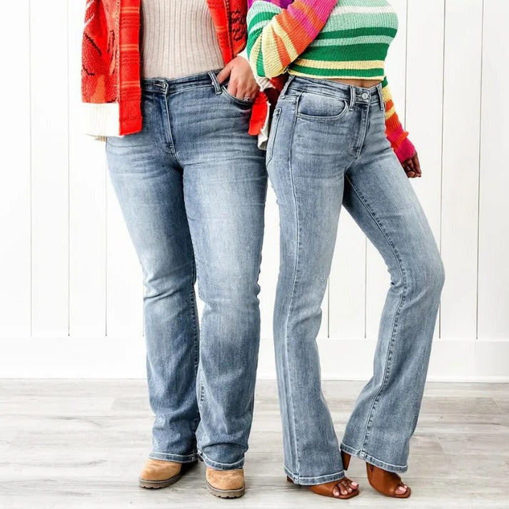 Transform your wardrobe with our sculpting stretch bootcut jeans, designed to offer unmatched comfort and an irresistible fit that feels tailor-made for you. Featuring remarkable 4-way stretch fabric, these jeans beautifully hug your body, effortlessly highlighting your curves. The chic bootcut design not only offers a flattering silhouette but also ensures you exude confidence and sophistication all day long. Once you try these jeans, you'll wonder how you ever lived without them!