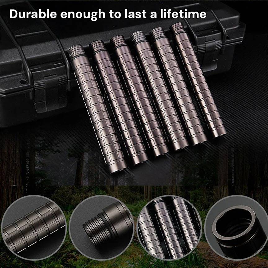 With its innovative modular design, this walking stick features precision threading that securely connects each component. Twist and lock sections easily to customize your tool setup on the fly. Internal compartments offer secure storage without sacrificing balance and stability, making it enjoyable to use.